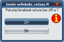 Kasa ne fiskalizira račune, a internet veza je aktivna.