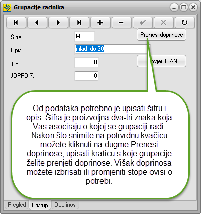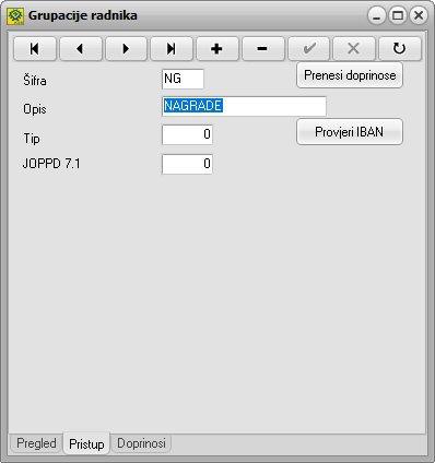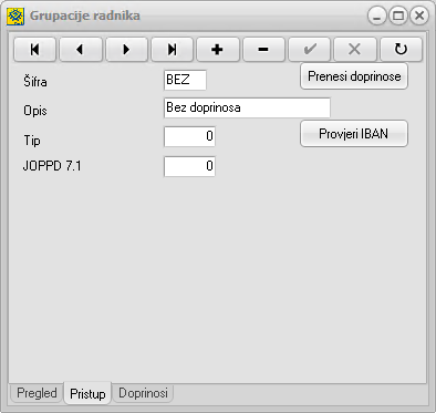 - KORAK Šifranti/Grupacije radnika otvorite novu grupaciju bez doprinosa kao na slici dolje
