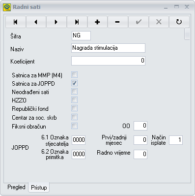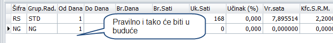 Ukoliko već imate otvorenu grupaciju i vrstu radnih sati za isplatu nagrade bitno je da grupacija i radni sat imaju istu slovnu oznaku da bi program automatski prilikom obračuna plaće dodao i nagradu kao novi red. Znači ne mora slovna oznaka biti kao što je predložena u našem primjeru NG nego proizvoljno ali mora se koristiti ista oznaka za grupaciju radnika i vrstu sata. Za isplatu toplog obroka možete otvoriti vrstu sata primjerice TO i grupaciju radnika TO.