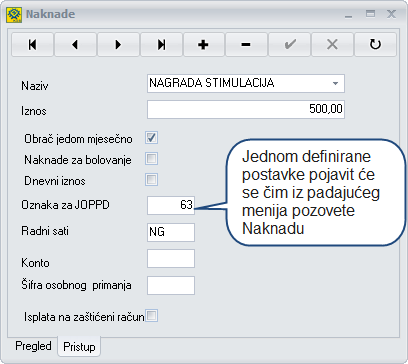 Ukoliko nagradu - stimulaciju, naknadu za topli obrok ili bilo koju drugu naknadu isplaćujete zajedno s neto plaćom za određeni mjesec potrebno je pripremiti slijedeće: