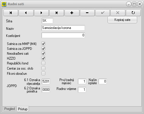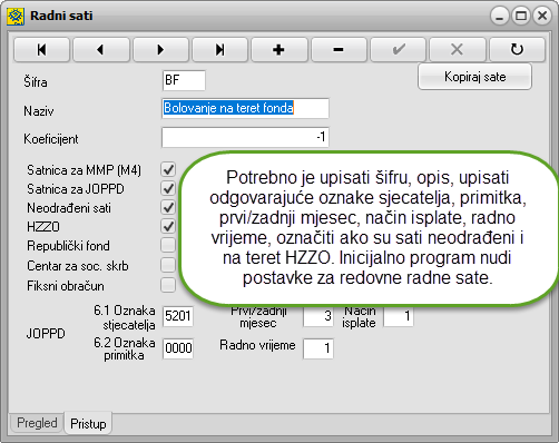 - KORAK Šifranti/Radni sati – otvoriti novu vrst sati kao na slici dolje
