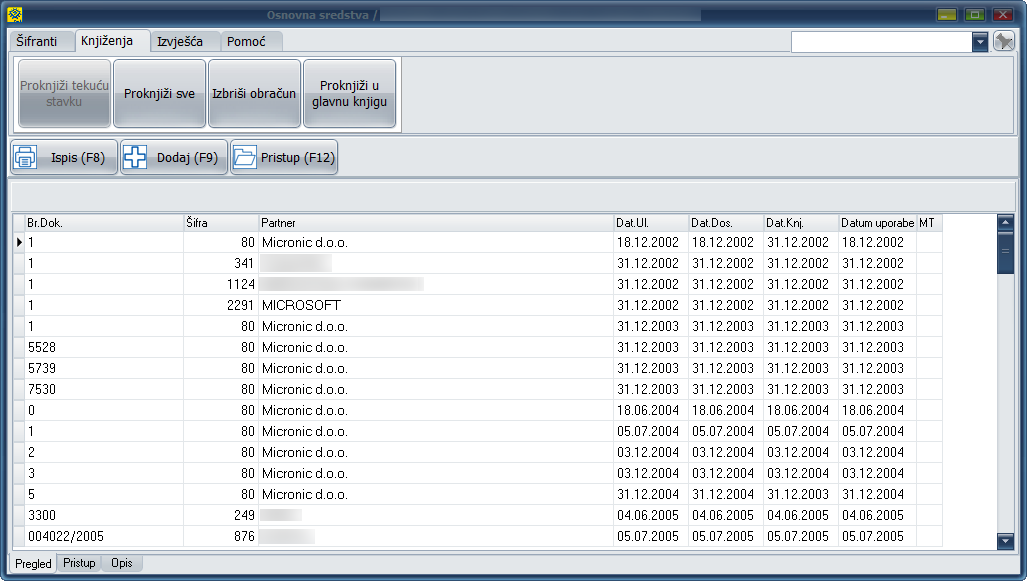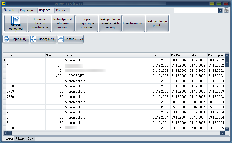 Evidencija osnovnih sredstava, šifrarnik, primke.