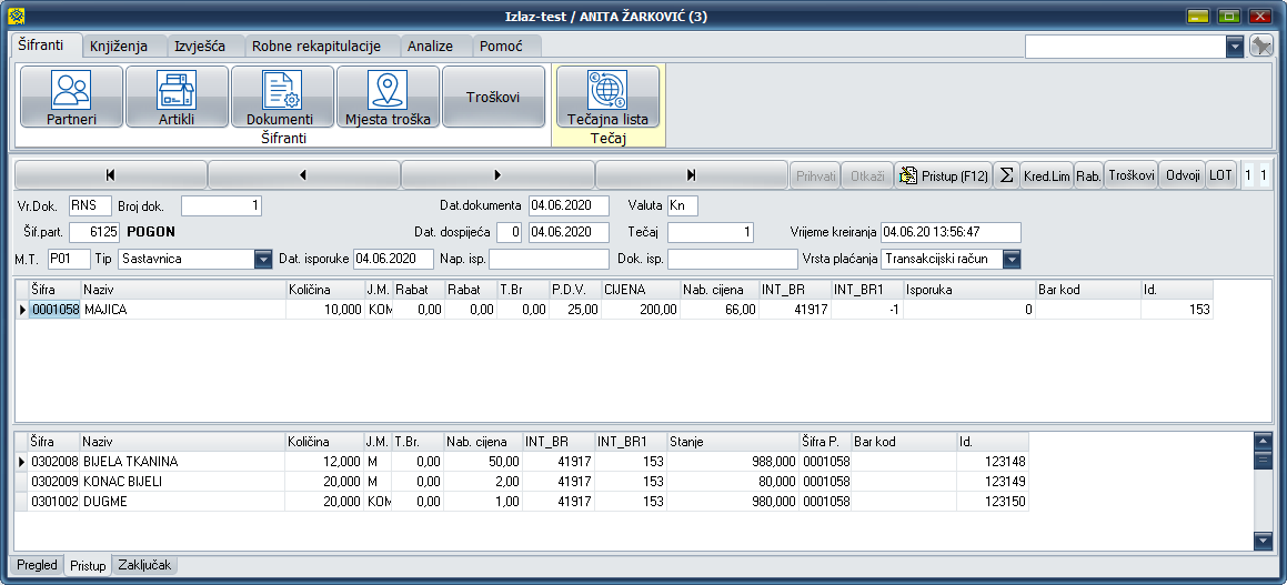 TRANSFER – transfer bilo koje vrste dokumenta u novi dokument, (PONUDE u RAČUN, PREDRAČUN u RAČUN itd.)