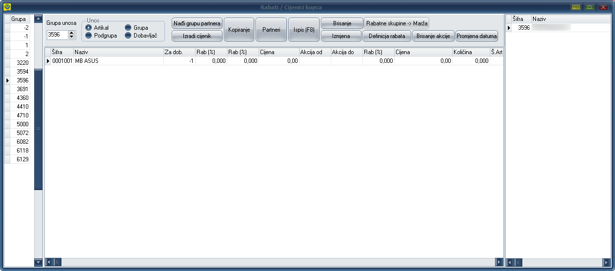 Određivanje rabatnih skupina kupaca – definicija rabata za pojednu skupinu kupaca ili pojedinačno za grupe, podgrupe ili artikle. Po rabatnim skupinama definira se i cjenik – cijene koje će vrijediti samo za kupce iz definirane rabatne skupine.
