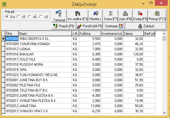 Inventurne liste, knjiženje i obračun inventurnih razlika. Automatski prijenos u slijedeću poslovnu godinu. knjiženje i obračun inventure uz automatsko knjiženje inventurnih razlika. Ispis razlika posebno za manjak i višak. Mogućnost unosa inventure i istovremenog knjiženja u robno knjigovodstvo – inventura se svodi na određeni dan. Prijenos donosa u novu poslovnu godinu jednim klikom, mogućnost ponovnog prijenosa n puta.