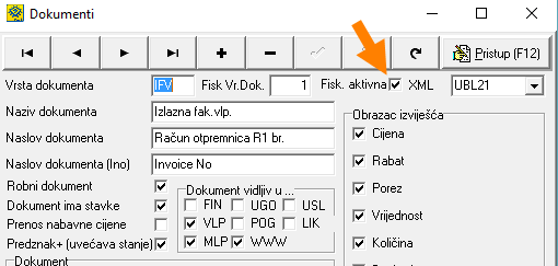 Šifranti/dokumenti – dodana opcija fiskalizacija aktivna – vrlo bitno kod korisnika kojii u robnom knjigovdstvu fiskaliziraju izlazne račune, a koriste više vrsta dokumenata jer možete izdvojiti dokumente za koje ne dopuštate fiskalizaciju. Primjerice ako dokument IFV uvijek koristite za transakcijske račune isključit ćete opciju AKTIVNA FISKALIZACIJA te na taj način spriječiti moguće pogreške. Kako ne možemo znati koji se sve dokumenti koriste na terenu iinicijalno je za sve izlazne dokumente označena opcija AKTIVNA FISKALIZACIJA.