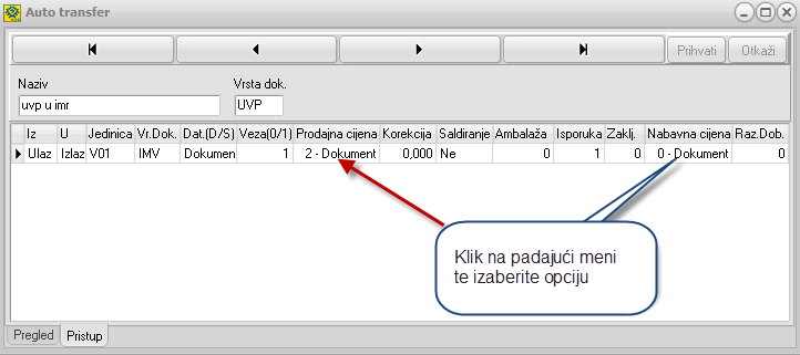 Autotransfer na strani ulaza - opcija prijenos nabavne cijene