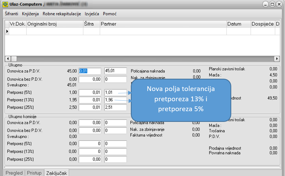 VAŽNO! VAŽNO! DODANA TOLERANCIJA PRETPOREZA 13% I PRETPOREZA 5% - ROBNA KNJIGOVODSTVA/ ULAZ/ ULAZNI DOKUMENTI (PRIMKE)