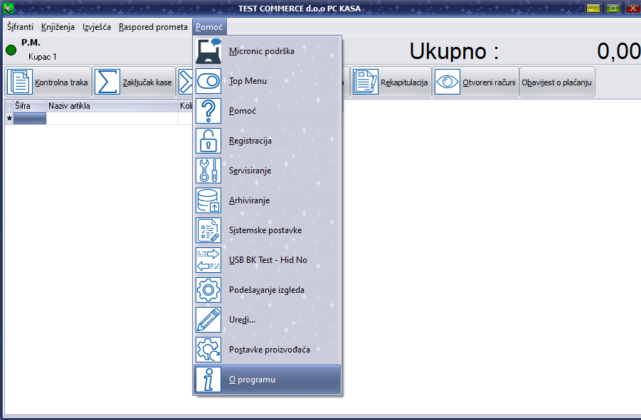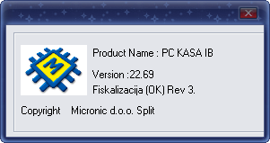 Kako provjeriti verziju Kase i koja je verzija u potpunosti usklađena sa Zakonom? U meniju POMOĆ odaberite opciju O programu. Oznaka FISKALIZICIJA (OK) REV 3. Kao na slici dolje.