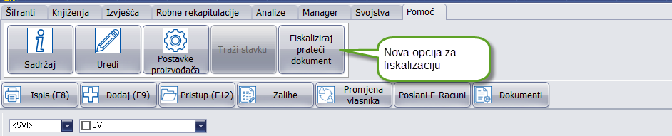 Korisnik odlučuje koji je to dokument i fiskalizira ga klikom na opciju FISKALIZIRAJ POMOĆNI DOKUMENT.