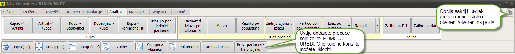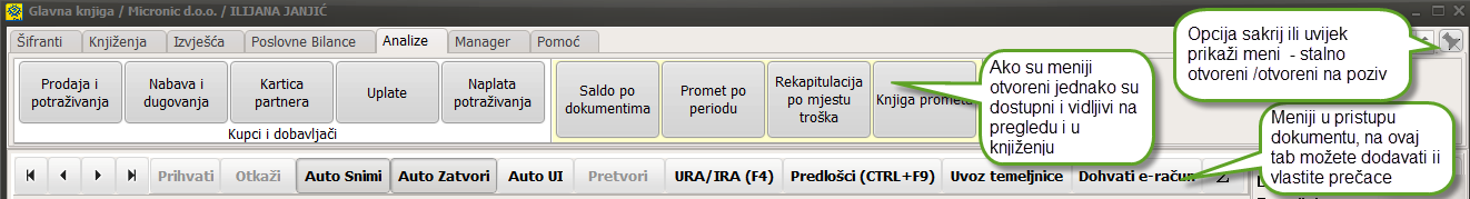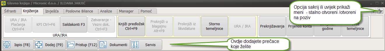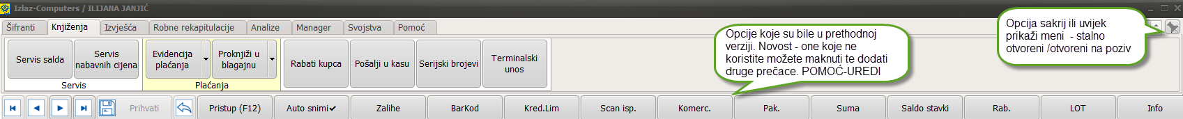 Pročitaj VišeUmjesto zastarjelih padajućih menija kreirali smo RIBBON menije koji su inicijalno stalno otvoreni a klikom na dugme PRIBADAČA u gornjem desnom kutu možete ih sakriti i aktivirati pozivom menija.
