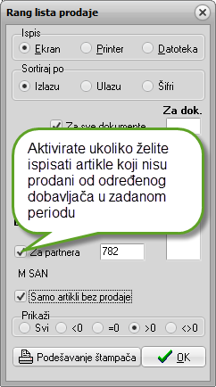 Izlaz/Izvješća/Analize/Rang liste prodaje - dodana mogućnost ispisa artikala koji nisu prodani u zadanom periodu od određenog dobavljača