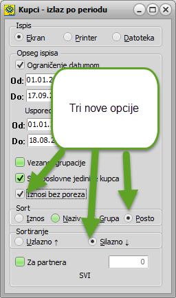Izlaz/Manager/Kupci - Izlaz po periodu - dodano sortiranje po postotku, mogućnost ipisa vrijednosti bez PDV-a i dodana opcija sortiranje Uzlazno pregled vrijednosti prodaje po kupcima od manjeg iznosa prema većem i Silazno od većeg prema manjem.