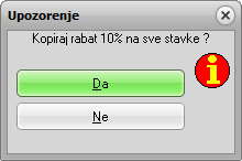Izlaz/Izrada izlaznih dokumenata - dodana mogućnost kopiranja rabata s prve stavke na sve ostale stavke u dokumentu dvoklikom miša - dobit ćete upit kao na slici