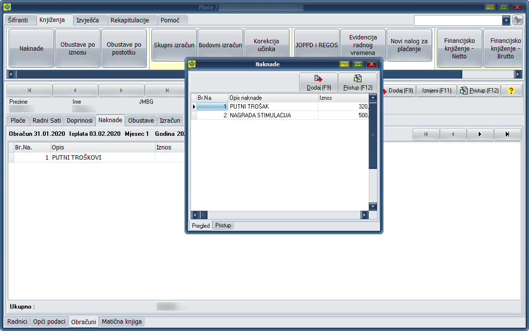 Kod obračuna plaća prilikom dodavanja određene naknade dodana mogućnost poziva šifrarnika naknada - poziv strelica dolje i Enter.