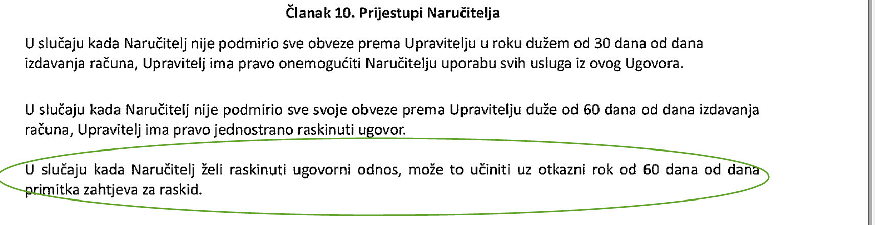 Na osnovu toga sustav Vas prepoznaje kao našeg korisnika. Kako je u zadnjih nekoliko mjeseci vladala velika gužva kod posrednika moguće je da dio Ugovora koji ste primili nije korektan – konkretno Članak 10 Prijestupi naručitelja.